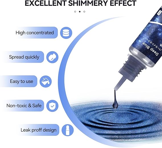 Yüksek Konsantrasyon: Sadece bir damla epoksi reçine renk pigmenti mükemmel renk efekti, parlak ve canlı renkler, istediği zaman 5 çeşit renk elde edebilir. (1 ml reçine başına 2 damladan fazla epoksi reçine pigmenti eklenmemesi önerilir)