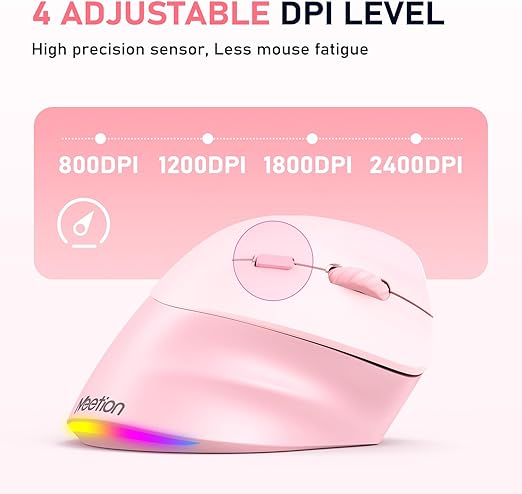 Ergonomik fare, kablosuz dikey fare RGB arkadan aydınlatmalı şarj edilebilir fare, Bluetooth (5.2 + 3.0) USB-A Tip-c adaptörlü 4 ayarlanabilir DPI uyumlu Mac/Windows/Andriod/PC/Tablet/iPad