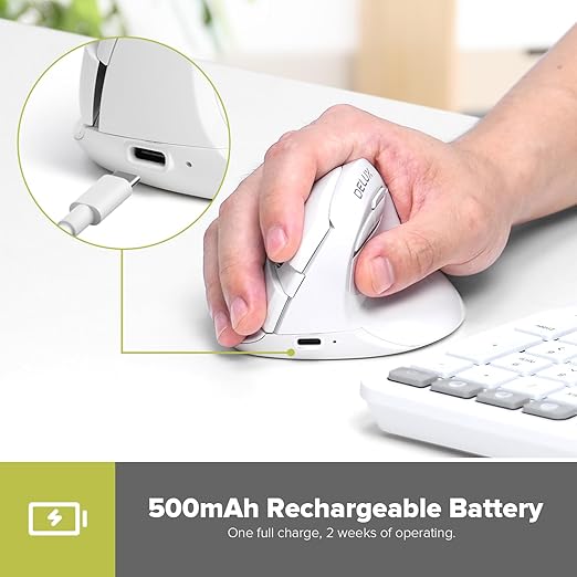 [Mini ve zarif]: Doğal el sıkışma tasarımlı kompakt mini dikey tasarım, avuç içi için dikey eğimli tasarım ve cilt dostu malzeme, insan el yapısına uygun; baş parmak için içbükey alan ve küçük parmak için az uzatılmış alt kenar, daha pürüzsüz hareket ve rahat tutuş; sadece mini değil, ergonomik, geleneksel farenin uzun süreli kullanımı nedeniyle elin yorulmasını azaltır, baskı serbest kalır