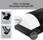 Visco ile Üstün Konfor: Ürünün üst kısmında kullanılan visco, vücut ısısına ve ağırlığına göre şekil alarak kişiye özel destek sağlar ve baskı noktalarını engeller. Bu özellik, uzun süreli oturmalarda sırt, kalça, bacak ve ayak rahatsızlıklarını azaltarak daha rahat bir deneyim sunar. Visko, vücut hatlarına uyum sağlayarak, konforunuzu en üst düzeye çıkarır.