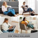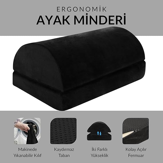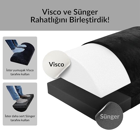 Çoklu Kullanım: Üst kısmı visco, alt kısmı ergonomik süngerden yapılmıştır. Yumuşak destek için visko kısmını, daha sert destek için ise sünger kısmını kullanabilirsiniz. Ürün, sadece ayak altında değil, uzanırken diz altına destek sağlamak için de kullanılabilir. Ayrıca, üst kısmını ters çevirerek ayak altına yerleştirip sallanarak rahatlatıcı bir pozisyon elde edebilir, alt kısmını oturma minderi olarak da kullanabilirsiniz.