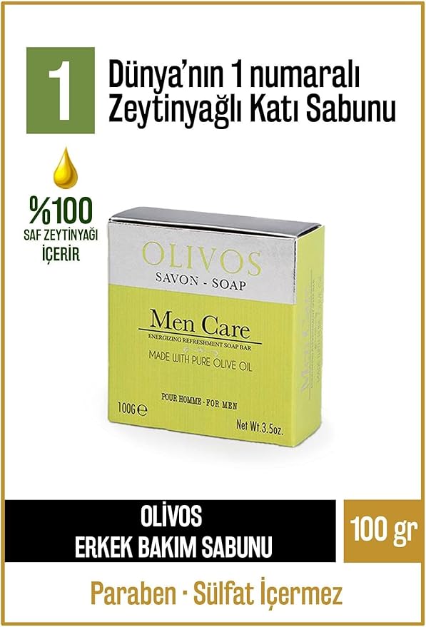 Erkek Bakım Zeytinyağlı Katı Sabun -%100 Doğal Zeytinyağı ile Nemlendirici ve Tıraş Sonrası Bakım, 100 gr