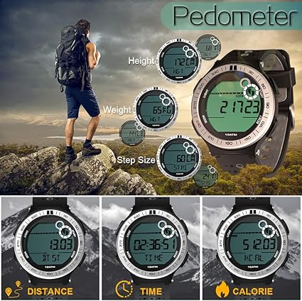 Erkek Spor Saati Pedometre 10 Atmosferik Basınç Su Geçirmez Yüzme ve Dalış, İçin Çalar Saat, Tur Kronometresi, Takvim, Arka Aydınlatma, 12 veya 24 Saat Formatı