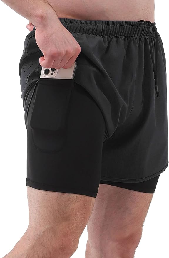 Erkek Spor Şortları 2’si 1 Arada Cepli Hızlı Kuruyan Koşu Bisiklete binme Fitness Şortları Doomun
