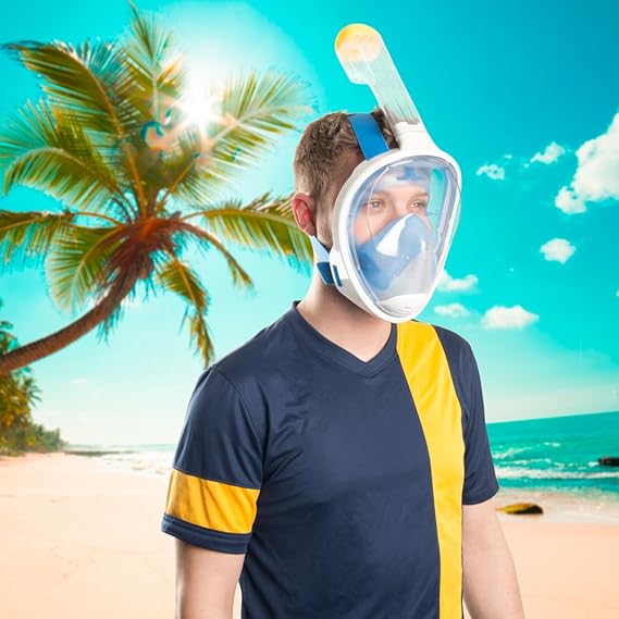 – Full yüz Snorkeling Mask: Kullanıcı nefes alabilir hem burun ve ağız su altında, çam kurtulmanıza Ballt endişe ve bir ağızlık yoktur bir başın üzerinde bir gibi zor açısı normal bir Şnorkel maske tutun.