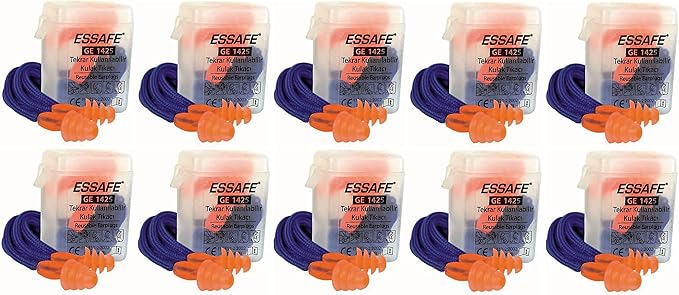 Essafe 10 Adet Hem Gürültüye Hem Suya Karşı Tam Koruma Sağlayan Kulak Tıkacı Ge1425 24db EN 352-2 & CE Belgeli Yüzme İçin Kulak Tıkacı Gürültü Önleyici