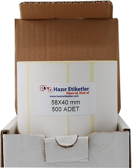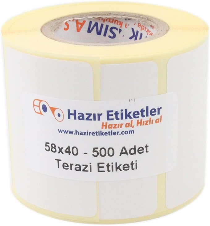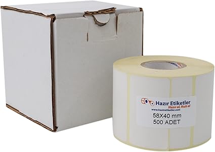 Boyut ve Miktar: Etiketler, 58x40mm ölçülerinde ve 500 adetlik bir rulo halinde sunulmaktadır.