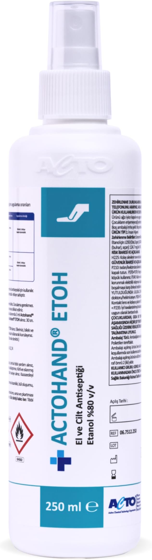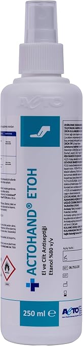 ETOH 250 ml – El ve Cilt Antiseptiği |%80 Etanol (v/v) İçerikli Hızlı Etkili Dezenfektan | Zararlı Mikroorganizmalara Karşı Etkin Koruma | Cilt Dostu, Hızlı Kuruyan Formül