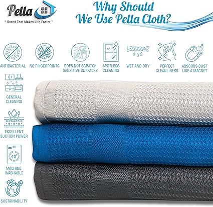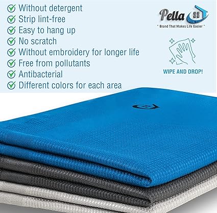 [Pack of 3] 15 x 23 inches (40 x 60 cm) 3 x Pella microfibre cloths come with three different towel colors (blue, grey, and white) [Usage] No wiping or drying required! It can be used dry or wet as needed, as well as with detergents, but this is not necessary with Pella.