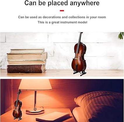 [Ayrıntılı Seti] Bu çello enstrüman modeli hediyesi 1 minyatür çello, sağlam ekran tabanı ve yay içerir, bu koleksiyoncular ve ev dekoru meraklıları için mükemmeldir.