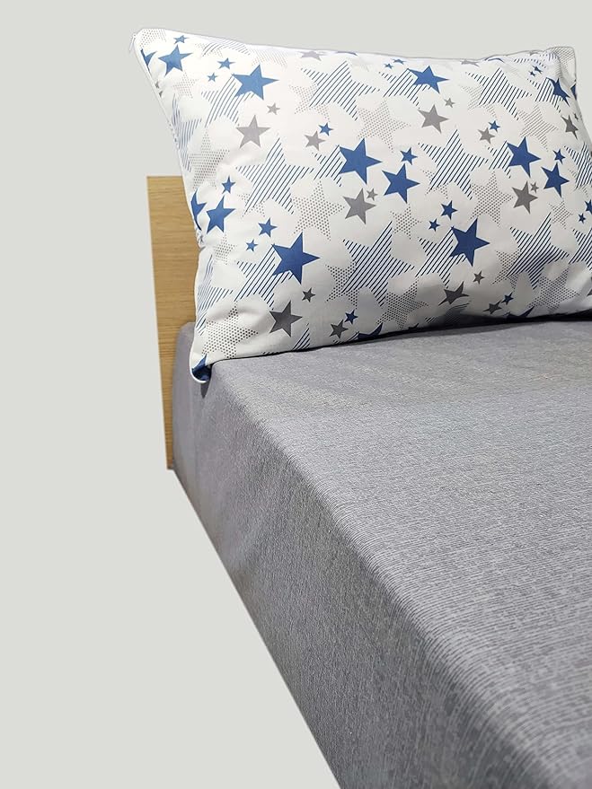 ev tekstil ürünleri, lacivert-yildiz Tek Kişilik Lastikli Çarşaf ve Yastık Kılıfı, 100 x 200