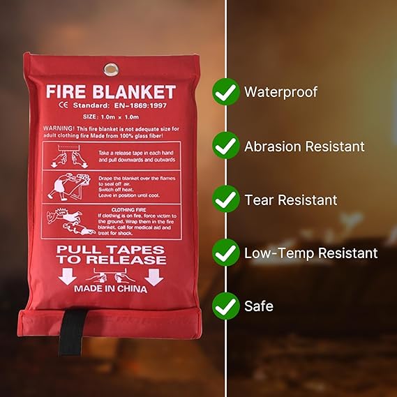 Ev Güvenliğinde Olması Gerekenler: Yangın battaniyesi, özel olarak işlenmiş cam elyafından dokunmuş bir kumaştır. Isı kaynaklarını ve alevleri örtebilir ve havayı izole edebilir. Yağ tavası yangınlarını söndürmek için kullanılabilir veya kaçış için vücudun üzerine örtülebilir.