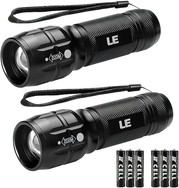 EVER LE LED el feneri, su geçirmez, açık hava sporları için, taşınabilir, zoom özellikli, süper parlak LED flaş, son derece parlak kamp el feneri, erkekler, kadınlar, çocuklar için (siyah 2’li paket)