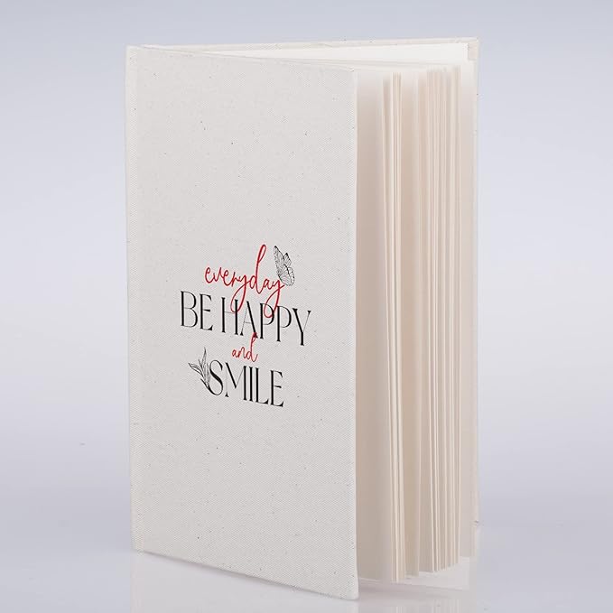 Şık Kanvas Kapak: %100 pamuk kanvas kapak, “Everyday Be Happy And Smile” tasarımıyla zarif bir görünüm sağlar.