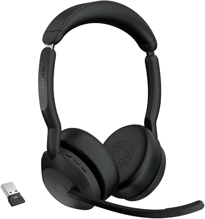 Evolve2 55 Stereo Kablosuz Kulaklık Jabra Air Comfort Teknolojisi, Gürültü Önleyici Mikrofonlar ve Aktif Gürültü Önleme – MS Teams Sertifikalı, Diğer Tüm Platformlarla Çalışır – Siyah