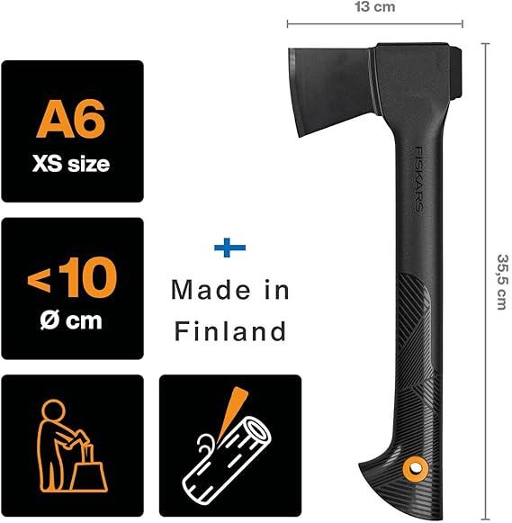 Finlandiya’da üretilmiştir, Yüksek dayanıklılık ve uzun süreli keskinlik, Ayrı olarak satılan balta bileyici ile baltanın kolayca yeniden bilenmesi (ürün no.: 1000601)