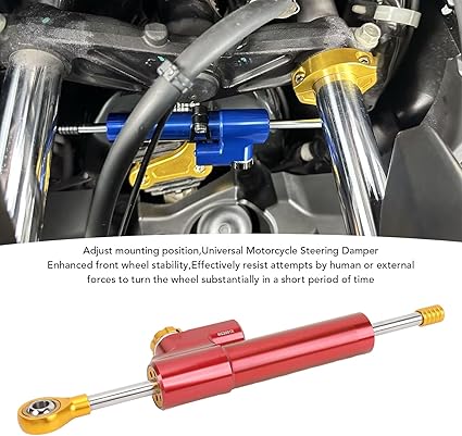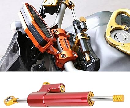 Evrensel Direksiyon Şok Emicisi, Motosiklet Şok Emicisi, Motosikletler Için Ayarlanabilir Aşınmaya dayanıklı sürüş Konforuna dayanıklı (kırmızı+altın)