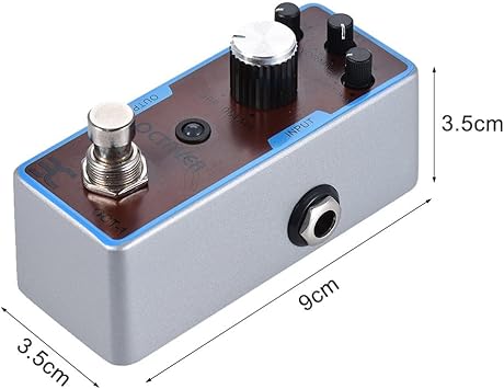 Hafif ve dayanıklı, tam metal kabuklu kompakt boyutlu oktav gitar efekt pedalı.
