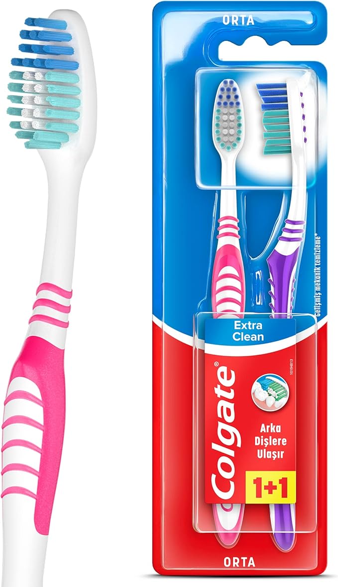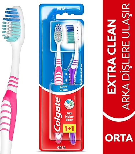 Extra Clean Dil Temizleyicili Arka Dişlere Uzanan Orta Diş Fırçası 1+1