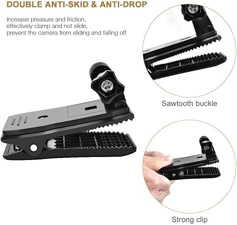 【 Statik 】 Mini kelepçe tutucuyu GoPro veya GoPro benzeri efektini sırt çantası, şapka, kemer, kayışlar, ince sörf ve kaykay ve benzer kumaşlara kolayca sabitleyebilirsiniz, benzersiz bir çekim açısı sunar. Sırt çantanıza sıkıca tutturulabilen devasa bir timsah tasarımı. Ayrıca 360 derece dönebilen bir taban ile yönü ve kamera açısını ihtiyaçlarınıza göre ayarlayabilirsiniz. Kolu ve sapı