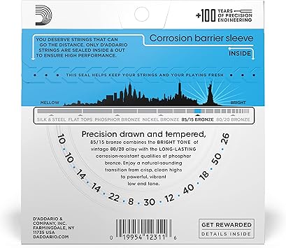 Ez940 Akustik Gitar Tel Seti, 12 Telli, 85/15 Bronze, Li