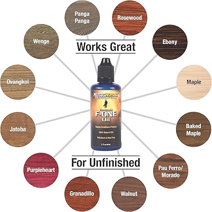 %100 doğal olarak üretilen yağlar. Tüm boyanmamış gül ağacı, abanoz ve maun fretboardlarda kullanım için
