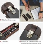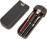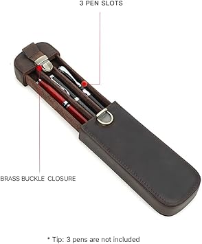 FAMILY Deri 3 Yuvalı Dolma Kalem Kılıfı, El Yapımı Hakiki Deri Kalem Düzenleyici Kılıf 3 Kalem, Kalem Saklama Hediye Kutusu (Kahve)