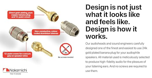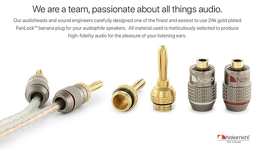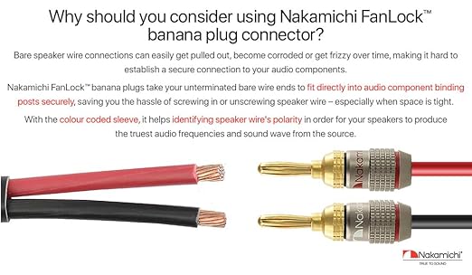 ✅ Nakamichi FanLock muz fişleri doğrudan ses bileşeni bağlantı direklerinize sorunsuz bir şekilde sığar ve özellikle alan dar olduğunda hoparlör kablosunu vidalama veya sökme zahmetinden sizi kurtarır.