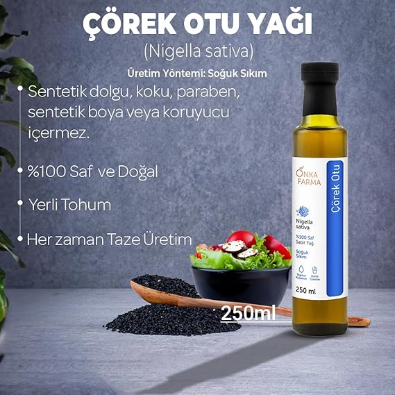 Farma%100 Saf Çörekotu Yağı 250 ML%100 Doğal Soğuk Sıkım Çörek Otu Yağı