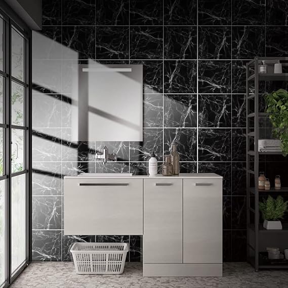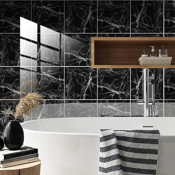 ❥【En İyi Malzemeler】Çevre dostu PVC malzemeden yapılmış yüksek kaliteli yapışkan fayanslar, ağır metal içermez ve formaldehit içermez, güçlü ve uzun ömürlüdür, asla yırtılmaz veya rengi solmaz. Her boyut 20 cm x 20 cm, tamamen su geçirmez tasarım.