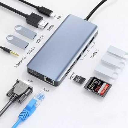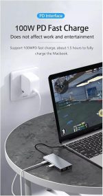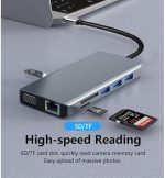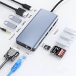 FC-31 Macbook Uyumlu Type-C™ USB-C to 4* USB 3.0 4K 1080p HD HDMI VGA 1000 Mbps RJ45 Pd Aux Ses Sd Tf Kart 11IN1 Çevirici Hub Adaptör