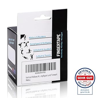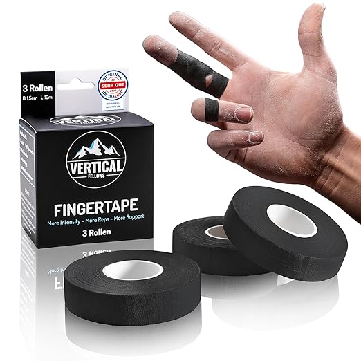 Fellows® Dermatest tırmanma bandı, 1,5 cm genişliğinde, PDF bant kılavuzlu, ideal parmak bandı ve spor bandı, tırmanma, kaya tırmanışı, güç sporları, hentbol, dövüş sporları için (3 rulo