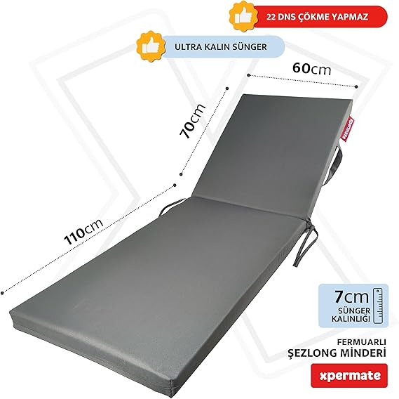 XPERMATE Katlanabilir şezlong minderi , 60×180 cm ölçüleriyle mükemmel uyum sağlar.
