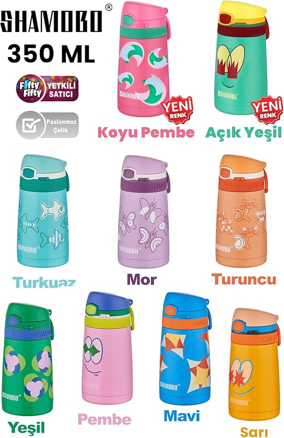 FiftyFifty Çocuk 350 Ml Pipetli Paslanmaz Çelik Termos Bpa İçermez 9 Renk Koyu Pembe