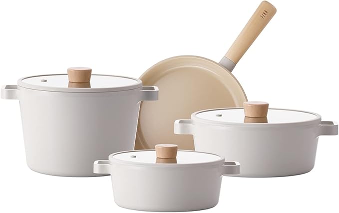 Fika 7 Parça Cam Kapaklı Seramik Kaplama Döküm Sosluk Tencere Tava Seti