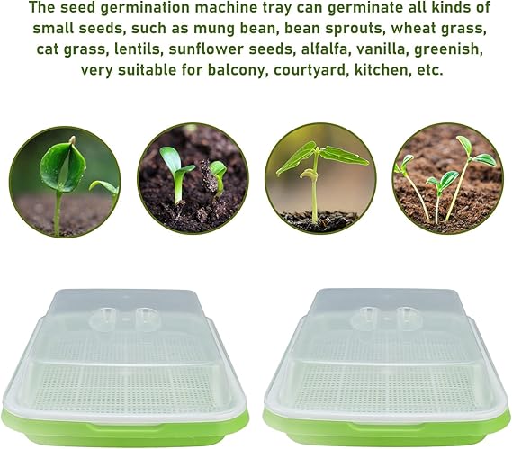 Filizlenme Kiti, Kapaklı Yoğun Filizlenme Tepsisi Buğday Çimi Yetiştiricisi Maş, Buğday Çimi, Yeşil Tohumlar, Kapalı Bahçe Için Filizlendirme Konteyner Seti