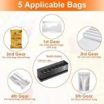【Beş sıcaklık modu】Torba ısı yapıştırma makinesi, farklı torbalar için sızdırmazlık gereksinimlerinizi karşılamak için 5 ayara sahiptir. Şeffaf plastik torbalar, OPP torbalar ve diğer çok ince torbalar için 1. vites.2. Ortak atıştırmalık torbaları, çip çantası, kurabiye çantası vb. İçin donanım.3. Dişli, ev gıda poşetleri ve vakum torbaları için çalışır. Mylar torbaları ve evcil hayvan maması poşetleri için 4. vites. Nispeten kalın alüminyum folyo yiyecek atıştırmalık paketleme torbala