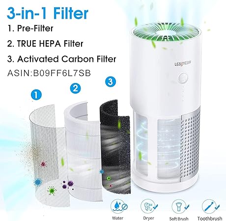 Yüksek Performanslı Arıtma: Ön filtre, gerçek HEPA filtre ve aktif karbon filtre ile donatılmış Leadyeah hava temizleyici, tozdan, küçük ve büyük parçacıklardan, evcil hayvan kepeğinden ve kötü havadan uzak durmanıza yardımcı olur. 360 derecelik hava girişi ve çıkışı, hapşırma, tıkanıklık ve havadaki kirletici maddelerin neden olduğu diğer semptomları en üst düzeye çıkarır.