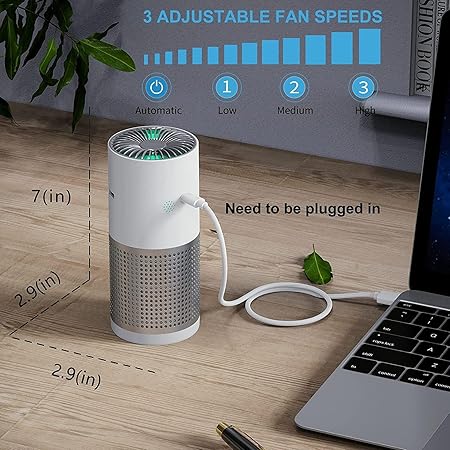 Filtreli Araç Hava Temizleme Cihazı, USB C Tipi Besleme Kaynaklı Masaüstü Hava Temizleme Cihazı, Mini Taşınabilir Hava Temizleme Cihazı, Evcil Hayvan Tüyü, Toz, Araba ve Yatak Odası ve Ofis için