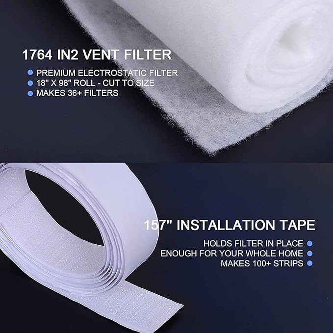 【Filtre pamuğu】: Her paket yakl. 57 inç x 39,37 inç filtre pamuğu teslim edilir. Bu, 36’dan fazla standart deliği kapatabilir. Standart büyük havalandırma deliklerini düşük bir fiyata kapatmayın.
