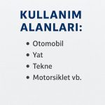 Kullanım Alanları: Otomobil, Yat, Tekne, Motorsiklet vb