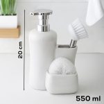 Sado HZ22901 Tezgah Üstü Süngerlikli Fırçalı Porselen Sıvı Sabunluk Deterjanlık – Beyaz Ürün Özellikleri: Zarif formuyla mutfağınızda veya banyonuzda estetik ve düzenli bir görünüm sağlar. Tezgah üstünde şık ve elegance bir görüntü sağlayacaktır. Kolayca temizlenir. Tezgah üstü sabunluk takımımızda süngerinizi koyabileceğiniz yer mevcuttur. Fırçası kolay deforme olmaz uzun süre kullanıma uygundur. Mutfakta ve Banyoda sıvı sabunluk seti olarak kullanabilirsiniz. Sıvı sabunluk seti fırça ve sünger ile birlikte set olarak satılmaktadır. Ürün Ölçüler: 1 Adet Sabunluk – 500 ml 1 Adet Fırça – 16 cm 1 Adet Sünger Toplam 3 Parça Ürün Gönderilmektedir.
