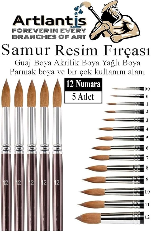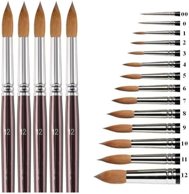 Fırçası 12 Numara 5 li 1 Paket Samur Yuvarlak Uçlu Fırça Seti Guaj Sulu Akrilik Yağlı Boya Fırçaları