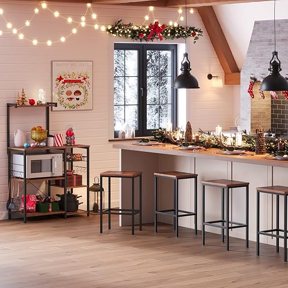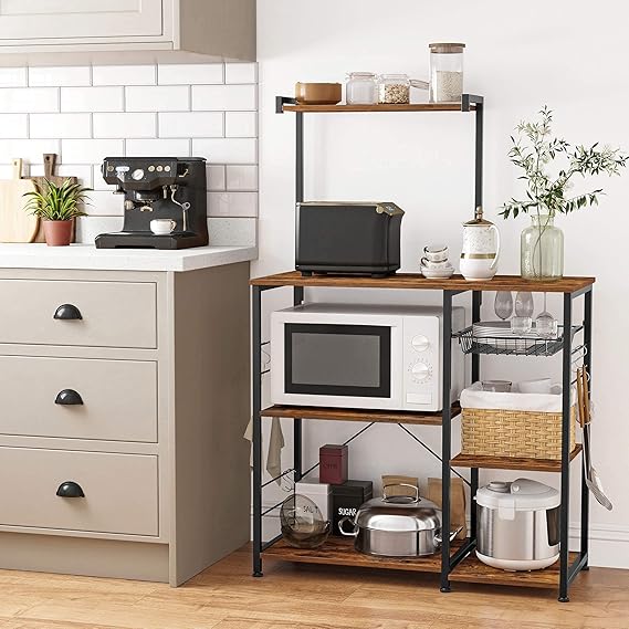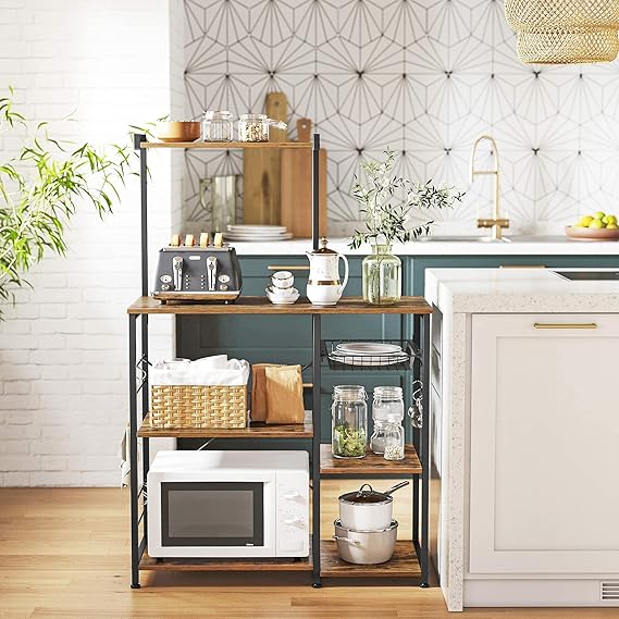 Fırıncı Raflı Raf, Tel Sepetli Mikrodalga Standı, 6 S-Kanca, Mutfak Rafı, Baharatlar, Tencereler ve Tavalar için Yardımcı Depolama Alanı, Rustik Kahverengi Kks35X