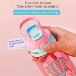 Flip Pipetli Çocuk Su Şişesi, 480ml Çocuk İçme Suyu Şişesi, Taşıma Saplı ve Kolay Düğmeli BPA İçermeyen Su Şişesi, Okul ve Spor için Sızdırmaz Çocuk Su Şişesi