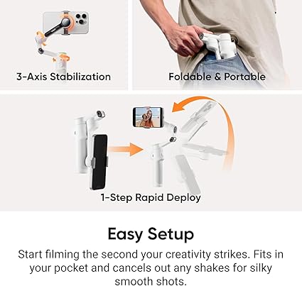 Temel Özellikler- Pürüzsüz Görüntüler İçin 3 Eksenli Sabitleme, Dahili Selfie Çubuğu ve Tripod, Deep Track 4.0 AI Konu Takibi, 1-Dokunuş Eşleştirme, Yerel iOS İzleme, Halka Işık Göstergesi, 360° Sonsuz Pan, Yakınlaştırma/Mod/Tetikleyici için SmartWheel Kontrolü, Manyetik Telefon Kelepçesi, Insta360 Uygulaması ile Düzenle,