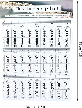 Ürün içeriği: Flüt akor grafiği, flüt üzerinde bulunan standart nota alanları için yaygın parmakları gösterir, büyük tonlar ve standart anahtarlar dahil.