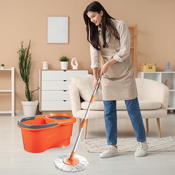 Focus Otomatik Temizlik Seti, Pedalsız Döner Sıkmalı 360 Başlıklı Mikrofiber Paspas