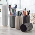 Fonksiyonlu Banyo Düzenleyici Set, Diş Fırçası, Makyaj Fırçası ve Gözlük Organizeri, Çizgili Tasarım, 4 Renk