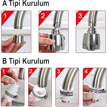 Fonksiyonlu Mutfak Lavabo Başlığı, 360 Derece Dönen, Tasarruflu, Musluk Başlığı, Krom,Fonksiyonlu Mutfak Lavabo Başlığı, 360 Derece Dönen, Tasarruflu, Musluk Başlığı, Krom,